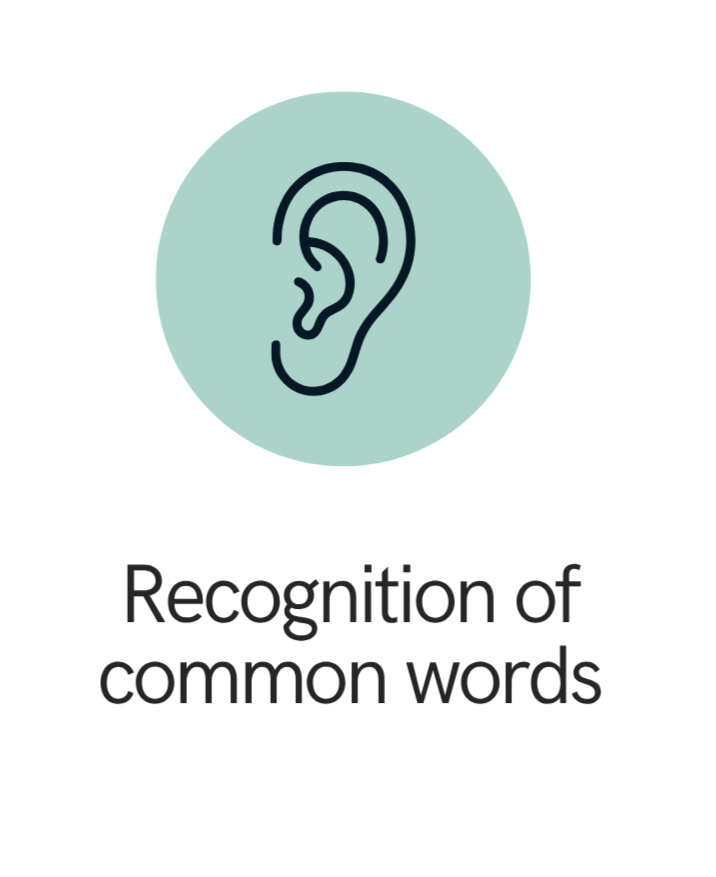 recognizing sounds and words.